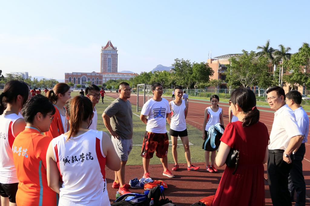 诚毅学院院长叶光煌、分管教学的副院长、院体委主任黄义新一行顶着酷暑,来到训练场地亲切慰问正在运动场上集训的教练员和运动员们。叶院长特别叮嘱大家在训练过程中要注重科学训练,勉励大家要克服高温、疲劳等不利因素,合理安排好休息时间,注意劳逸结合,参加比赛时,带上诚毅的精气神,赛出风格、赛出水平。