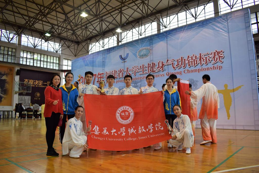 本次比赛分为集体赛和个人赛,共有来自福建省共31所高校代表队187名运动员参加。集美大学诚毅学院健身气功代表队在与来自全省各大高校众多高手的激烈比赛中,取得了集体项目:八段锦一等奖,六字诀二等奖;个人项目:中文1496班林晓斌获男子五禽戏第二名、软件1593班林晓军获男子五禽戏第四名、交通1673班颜富城获男子六字诀第四名、英语1692班曾怡静获女子八段锦第四名、法学1492班杨城斌获男子易筋经第五名、学前1691班沈冉冉获女子六字诀第六名的优异成绩。
